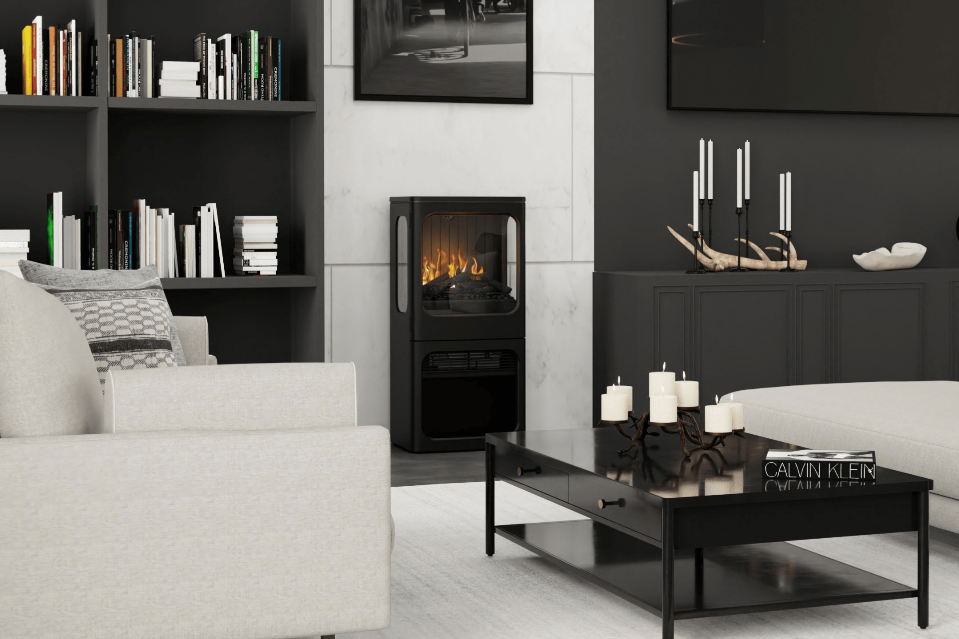 Mapleton 100 tvrtke Dimplex je električni štednjak od lijevanog željeza s trostranim staklom, realističnim Optimyst® plamenom i ugrađenim spremnikom za drva za dodatni šarm. Realističan efekt plamena, pucketanje vatre i termostatsko grijanje stvaraju toplu, autentičnu atmosferu bez muke. Dodajte opcionalnu dimovodnu ogrlicu za pričvršćivanje cijevi za peć i upotpunite klasičan izgled. Bezvremenski dizajn, moderna udobnost. Dimplex Mapleton 100 je kamin koji se ističe među ostalim električnim kaminima, zahvaljujući dizajnu koji niste često viđali. Njegov elegantan dizajn ima zaobljene kutove, otvorenu bazu i tri staklene stranice za optimalan pogled na vatru. To mu daje suvremen, ali topao osjećaj - kamin koji se ističe, a da nije prejak. Igra plamena s vodenom parom -