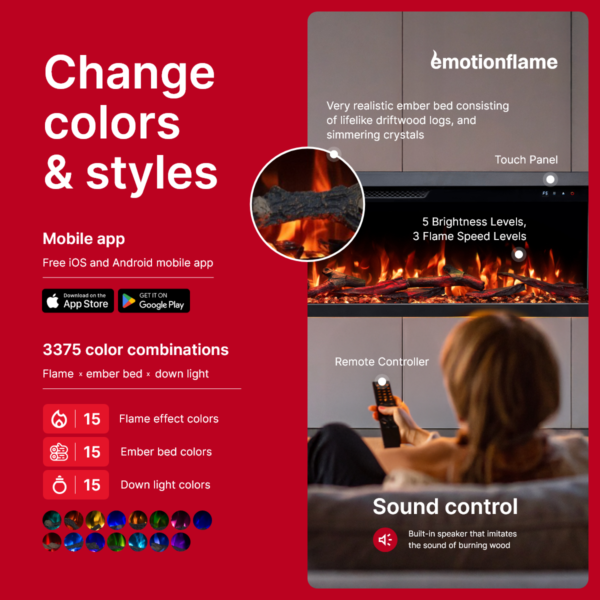 Kamin uključuje sigurnosnu značajku termičkog isključivanja kako bi se spriječilo pregrijavanje. Ako otkrije problem, automatski se isključuje. Ugrađena pouzdana sigurnost za bezbrižnost.