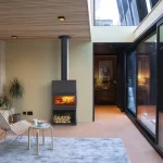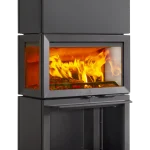 Visoka peć na drva s izvrsnim zadržavanjem topline. Kamenje koje čuva toplinu na vrhu peći na drva može dati do 12 sati više topline nakon što je posljednja cjepanica stavljena na vatru. U podnožju postoji i praktičan prostor za pohranu trupaca. Sustav ispiranja zraka i premaz na tri velike staklene ploče pomažu u održavanju čistoće za bolji pogled na plamen. Zajedno s unutarnjim pločama od punog lijevanog željeza svijetle boje, ovo pruža svijetao i jasan pogled na goruću vatru. Jednostavni otvori za zrak olakšavaju paljenje peći i kontrolu plamena i vatre, a ima držač za cjepanice u komori za izgaranje i vrata s kopčom za veću sigurnost.