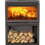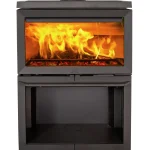 Velika i praktična peć na drva koja proizvodi puno topline. Široka ploča za kuhanje na vrhu peći na drva može primiti nekoliko posuda za kuhanje hrane. Praktične značajke uključuju jednostavne ventilacijske otvore za jednostavno paljenje peći i kontrolu topline. Premaz na sve tri staklene površine i sustav ispiranja zraka sprječavaju taloženje čađe na staklu. Osim toga, unutarnje ploče od čvrstog lijevanog željeza su svijetle boje. Zajedno, ovo daje svijetao i jasan pogled na goruću vatru. U podnožju također ima dosta prostora za pohranu trupaca. Zahvaljujući držaču cjepanica u komori za izgaranje i vratima s kopčom, možete se pouzdati u siguran i učinkovit rad.