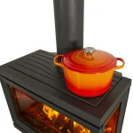 Velika peć na drva jedinstvenog dizajna koja proizvodi puno topline. Ova peć na drva ima više praktičnih značajki koje je čine jednostavnom za korištenje. Ima veliku i prostranu ploču za kuhanje koja lako prima nekoliko posuda za kuhanje u isto vrijeme. Također je odličan za održavanje topline hrane i pića. Peć na drva dizajnirana je s tri velike staklene ploče koje pružaju izvrstan pogled na plamen iz više kutova u prostoriji. Premaz na cijelom staklu i sustav za pranje zraka pomažu u održavanju stakla čistim. Zahvaljujući jednostavnim otvorima za zrak, lako je upaliti peć i kontrolirati plamen i vatru, a za veću sigurnost ima držač cjepanica u komori za loženje i vrata koja se zaključavaju na klik