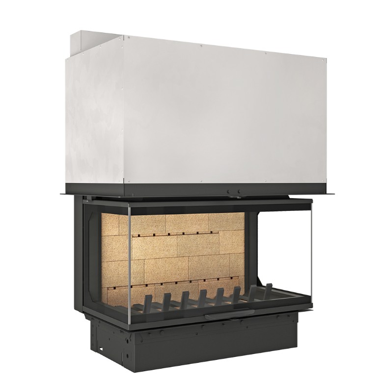 Kamin na drva s 3 prozora, s vratima na uvlačenje. Vodonepropusni kamin, format 16/9, izborna zidna verzija. Unutrašnjost s crnom ili plamenom opekom ili vatrostalnim pločama. Širok izbor navlaka dostupan u trgovini.