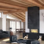 - Unutrašnjost s crnim ili plamenim vatrostalnim ciglama ili panelima