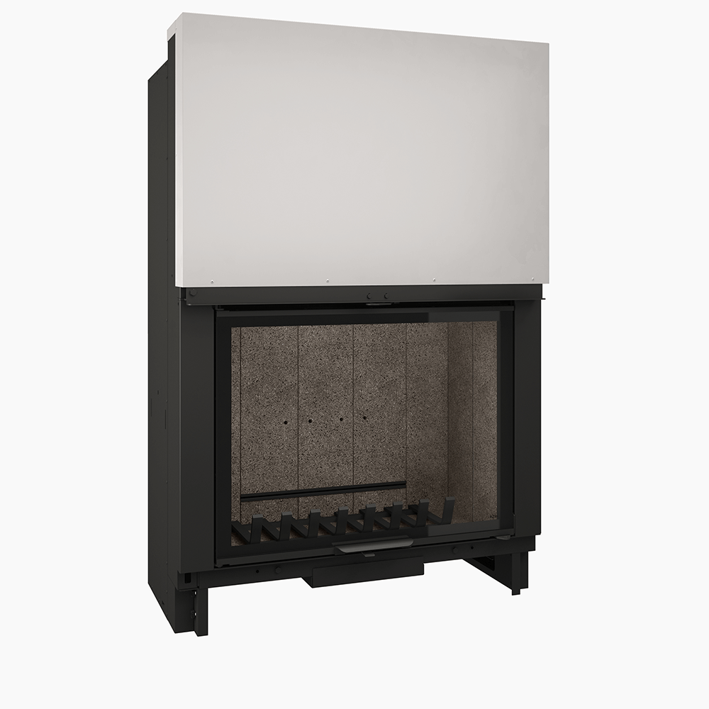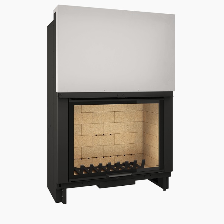 Ovaj kamin na drva nudi vam prekrasnu visinu stakla kako biste u potpunosti uživali u veličini plamena. Njegov crni sitotiskani prozor elegantno ističe jednostavnost njegovih linija. Ima čisti sustav izgaranja i zatvoreno izgaranje za novije domove.