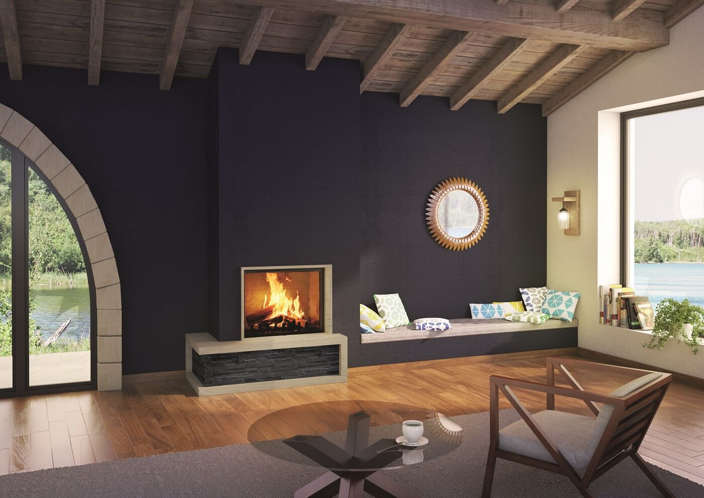 - Jednostrani kamin na drva