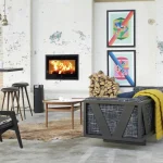 Scan 1004 je umetak u ravnini, dostupan s bijelim staklom s mat kromiranim rubovima ili crnim staklom s crnim rubovima. Scan 1004 prima trupce do 65 cm. Novo: sada dostupno i s okvirom vrata od crnog čelika!