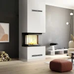 Scan 5004 FRL je veliki kamin, koji će dominirati vašom sobom i širiti osjećaj luksuza. Staklo pokriva tri strane. Visoka podizna/giljotinska vrata s mehanizmom za lagano zatvaranje ostavljaju ekskluzivan dojam.